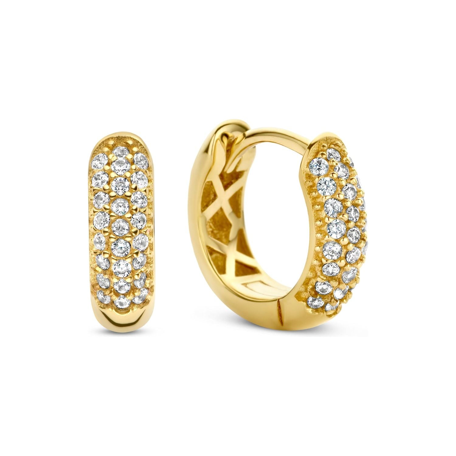 Klappcreolen mit 50 Zirkonia 14x4mm Gold 585/000