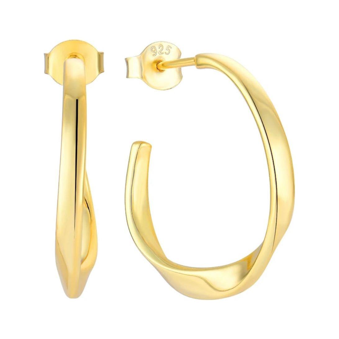 Die hochwertige 18 Karat Vergoldung verleiht den Creolen einen luxuriösen Glanz, der jedem Outfit eine edle Note verleiht. Die geschwungene Form dieser Ohrringe sorgt für einen modernen Touch, während das klassische Design sie zu einem vielseitigen Accessoire macht, das sowohl zu formellen Anlässen als auch im Alltag getragen werden kann.